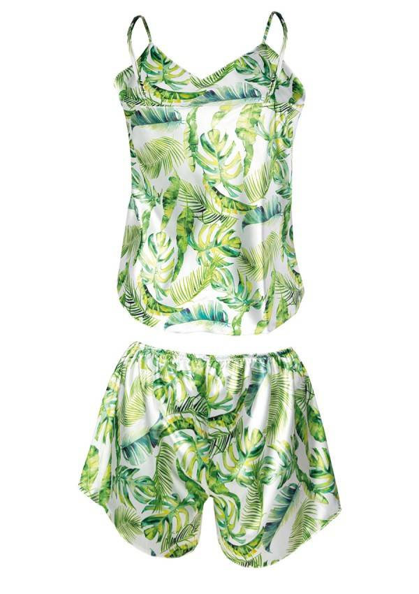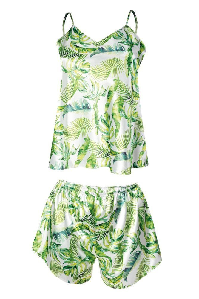 Zmysłowa piżama damska wykonana z delikatnej, przyjemnej dla ciała satyny. Koszulka z głębokim dekoltem na wąskich regulowanych ramiączkach. Do kompletu krótkie spodenki, o luźnym fasonie.