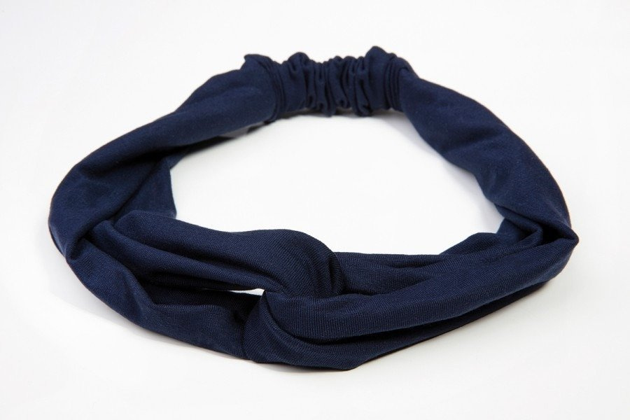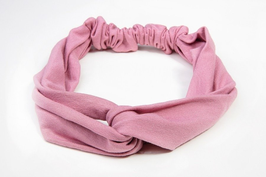 Bawełniana opaska do włosów posiada wszytą gumkę, dzięki czemu dostosuje się do kształtu i rozmiaru głowy. Materiał na górze układa się w modny węzeł.
