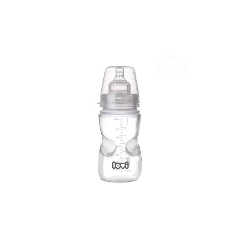 Butelka LOVI jest bezpieczna dla dziecka karmionego piersią, ponieważ nie zaburza odruchu ssania. Została zaprojektowana i przebadana pod nadzorem medycznym. Posiada unikalny dynamiczny smoczek do karmienia z cienką wydłużającą się końcówką, twardą, profilowaną podstawą i systemem odpowietrzania super vent.