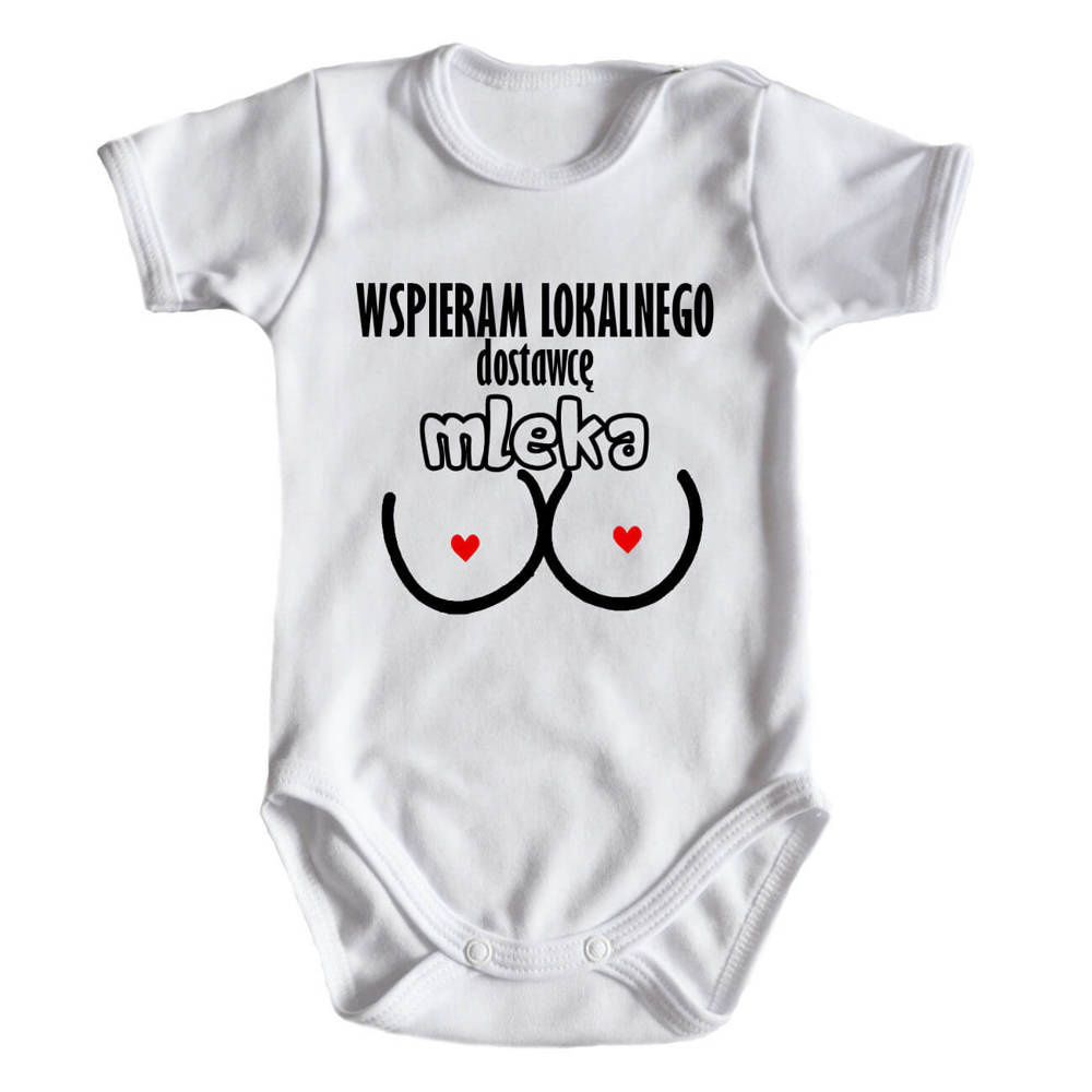 "Wspieram dostawce mleka" body krótki rękaw Moocha biały