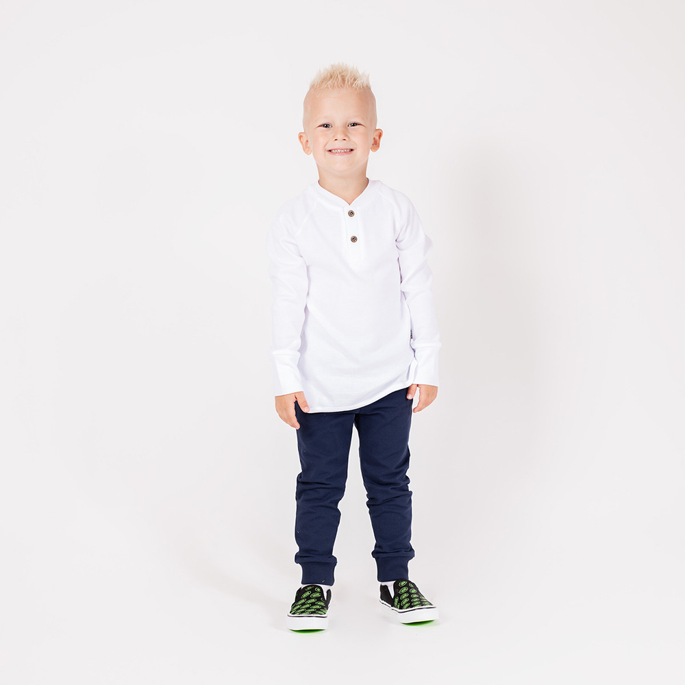Gustowna bluzeczka z długim rękawem. Model wykonany z wysokogatunkowej bawełny. Ubranko posiada praktyczne guziczki ułatwiające ubieranie, dodatkowo zdobi je naszyta okrągła skórka. Materiał posiada certyfikat Oeko-Tex Standard 100 Tekstylia godne zaufania.