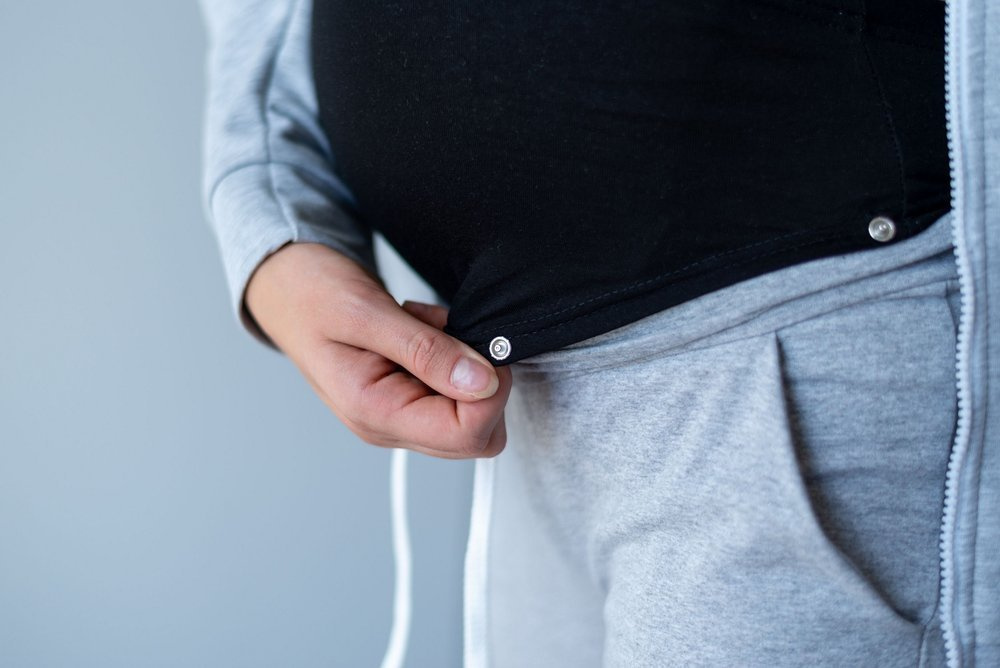 Spodnie posiadają odpinany na napy pas , który w okresie ciąży nachodzi na brzuch okrywając go ale nie uciskając.