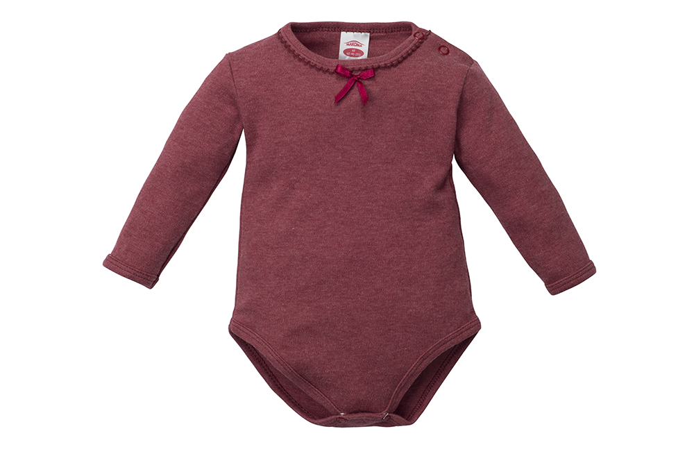 Body niemowlęce z długim rękawem dla dziewczynki, z wysokiej jakości bawełny w kolorze bordowym.