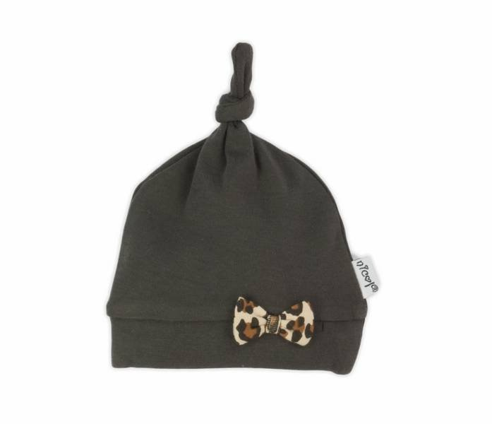 Bawełniana czapka niemowlęca z węzełkiem w kolorze brązowym. Czapeczka dobrze przylega do główki, ale jej nie uciska. Zapewnia dziecku ochronę uszu przed chłodem podczas wiosenno-jesiennych spacerów. Czapeczka będzie doskonałym dopełnieniem stylizacji ubranek Mia. Kompletując garderobę dziecka warto o niej pamiętać.
