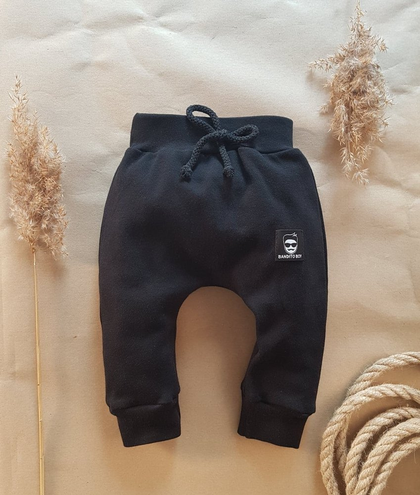 Spodenki z kolekcji BANDITO BOY, obniżone lekko w kroku. Wykonane z przyjemnej bawełny, całość uzupełnia czarny sznurek i czarna naszywka. Spodenki mają w pasie gumę, dzięki czemu spodenki odpowiednio przylegają w pasie.