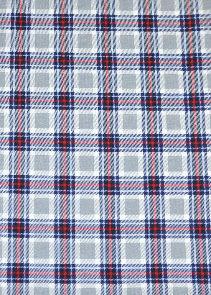 Piżama męska z wysokiej jakości bawełny. Koszulka z długim rękawem, dekolt w kształcie litery "V". Na wysokości klatki piersiowej mała kieszonka. Spodnie długie w kratę.