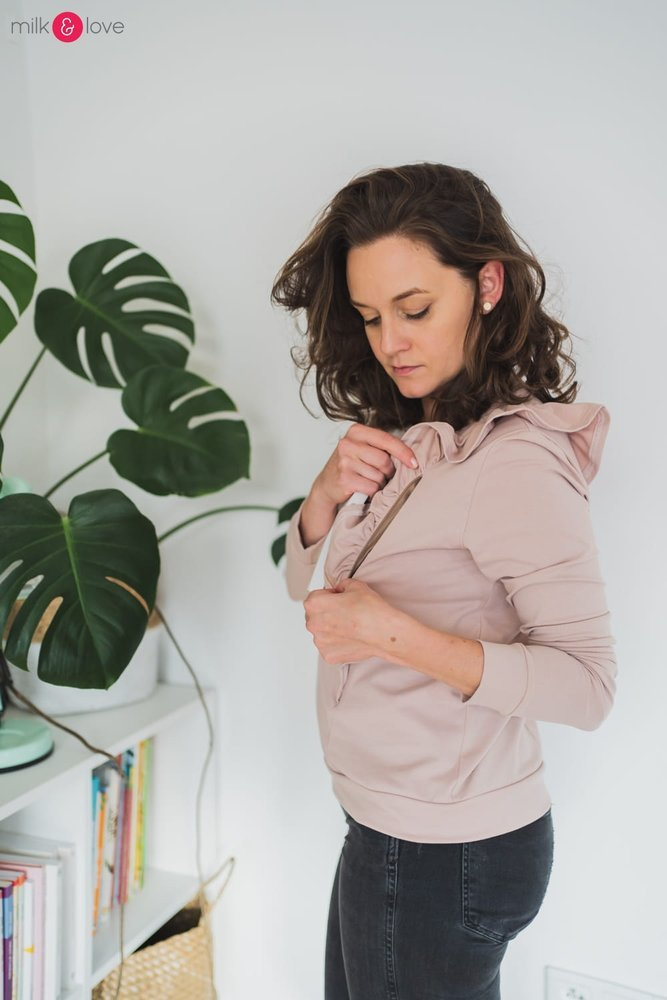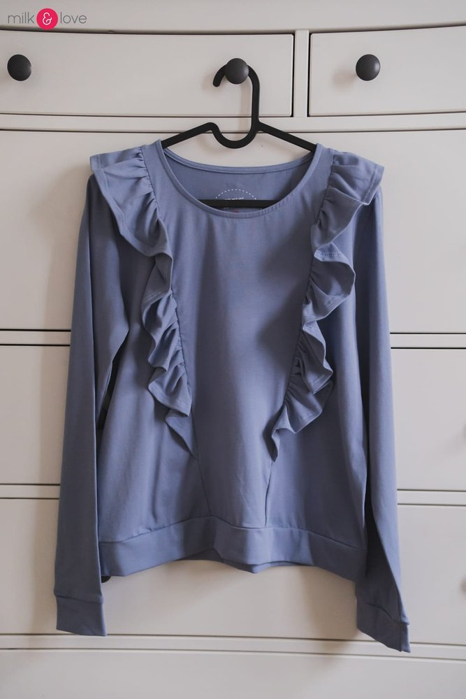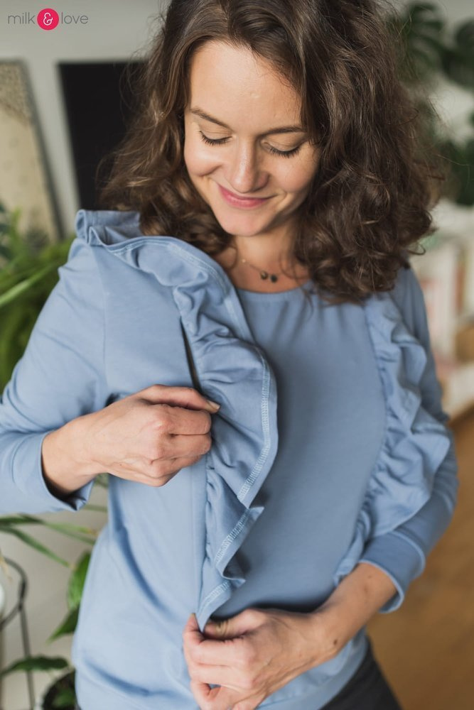 Zamki ukryte w falbankach są tak mało widoczne, że bluzkę możesz nosić także po zakończeniu karmienia!