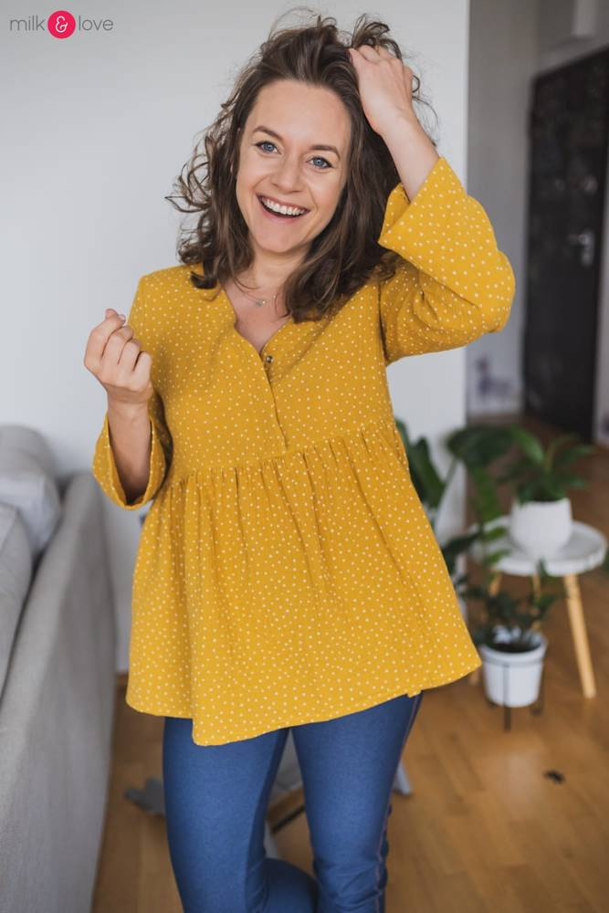 Tunika Mother Nature ma ukryte w dekolcie napy - czyli tradycyjne rozwiązanie ułatwiające nakarmienie maluszka, bez konieczności podnoszenia bluzki. Napy są schowane, żebyś później mogła nosić tunikę, jako zwykłe ubranie.