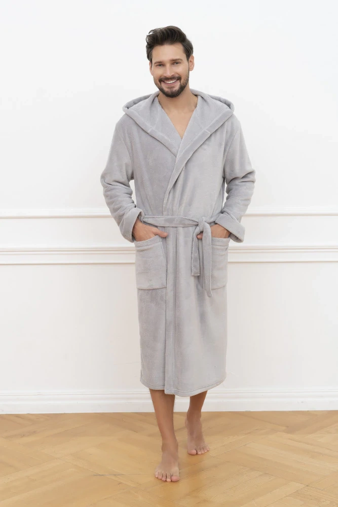 Szlafrok męski z kapturem Mimas Italian Fashion- szary