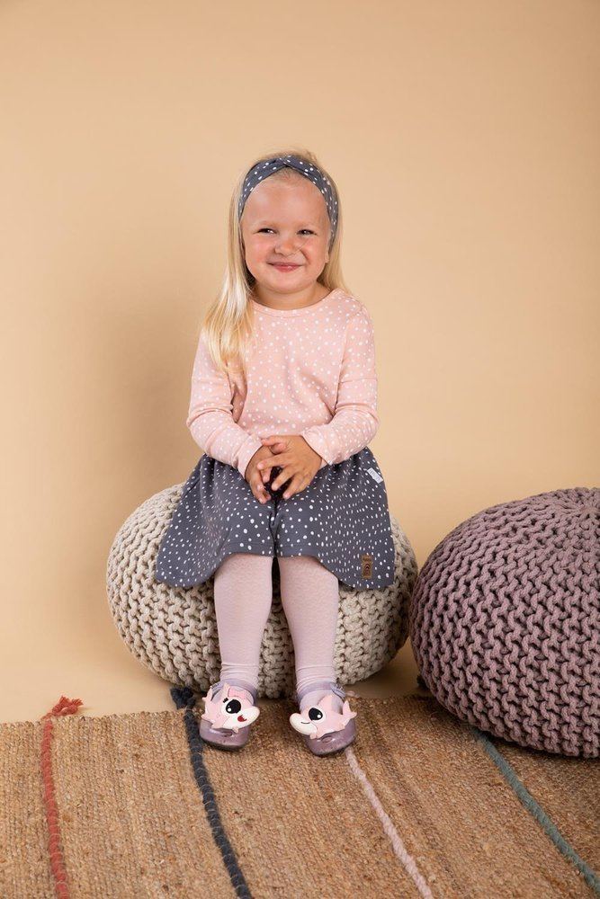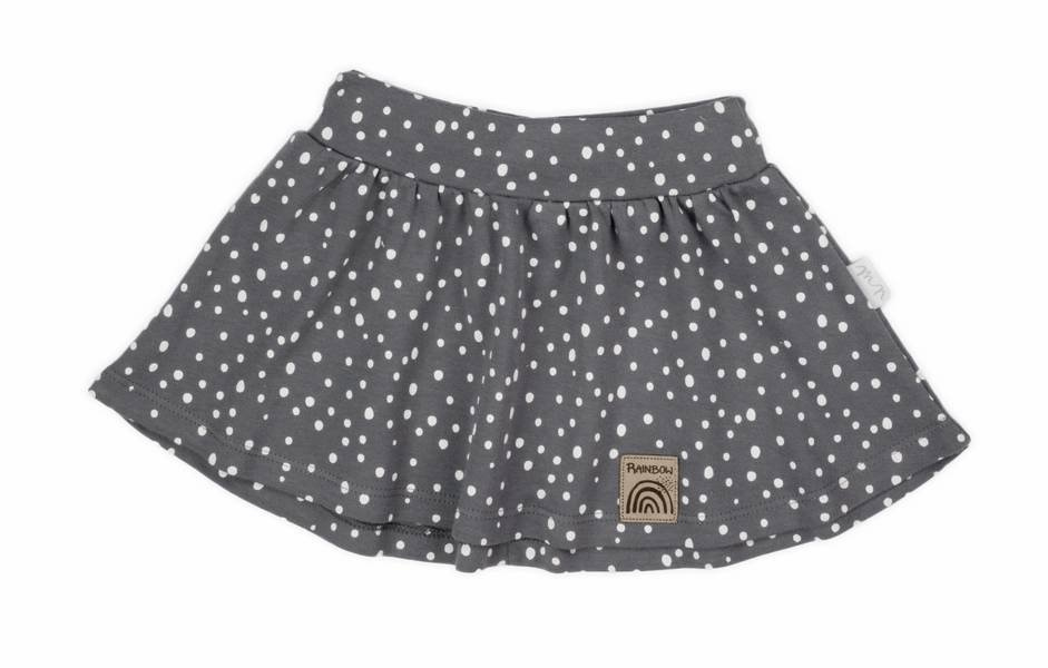 Zwiewna spódniczka, uszyta z grafitowej bawełny. Kolorystycznie świetnie skomponuje się z resztą dziewczęcej garderoby. W pasie wszyto wygodną gumkę, nie uciskającą brzuszka. Materiał posiada certyfikat Oeko-Tex Standard 100 Tekstylia godne zaufania.