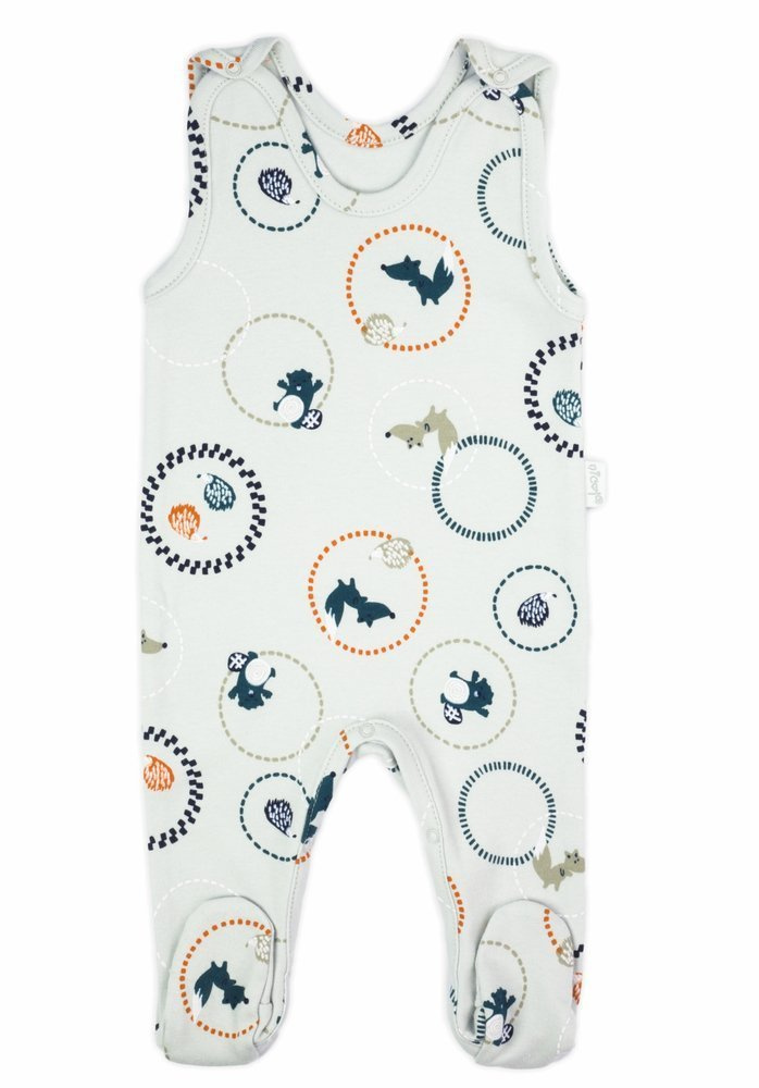 Wygodne śpioszki z nadrukiem, wykonane zostały ze 100% bawełny. Na ramiączkach rozpinane są bezniklowymi napkami, a stópki zabezpieczone są delikatnymi ściągaczami, zapobiegającymi zsunięciu się ubranka.