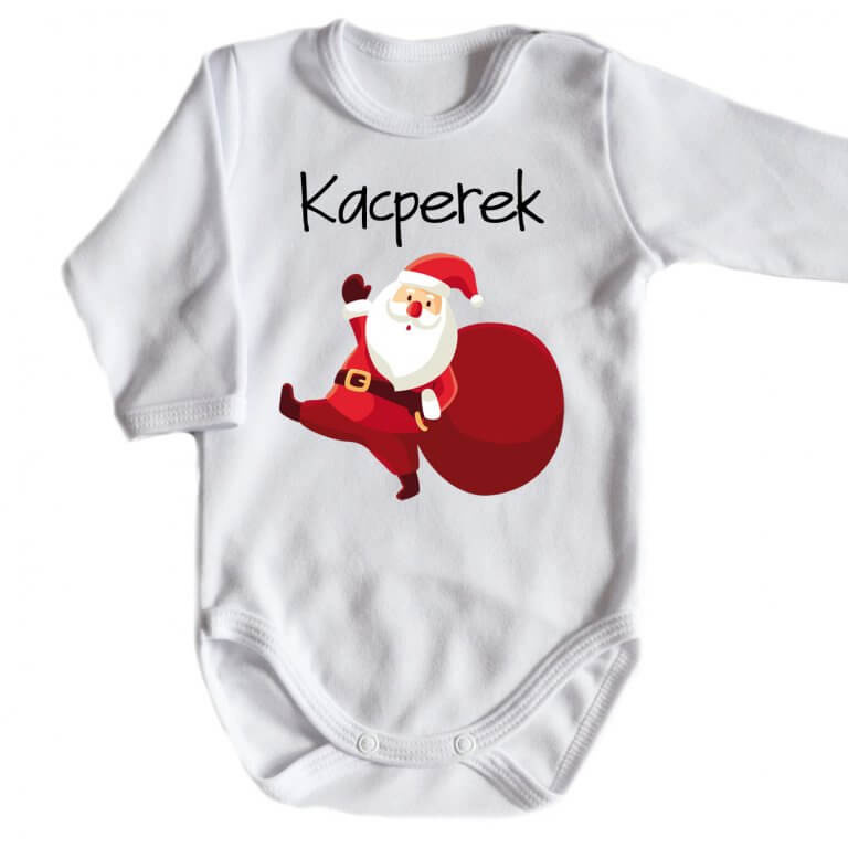 Body długi rękaw "Mikołaj z workiem + dowolne imię" Moocha biały
