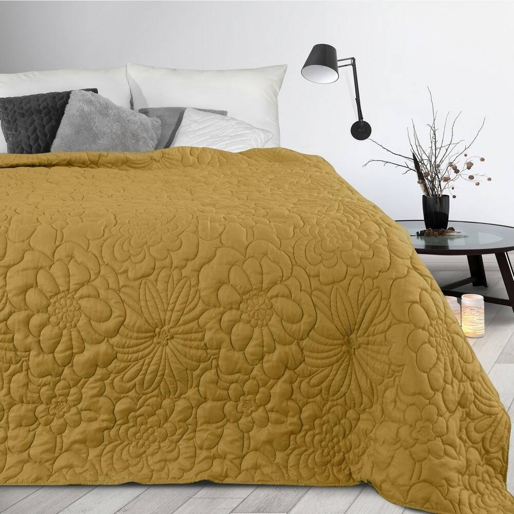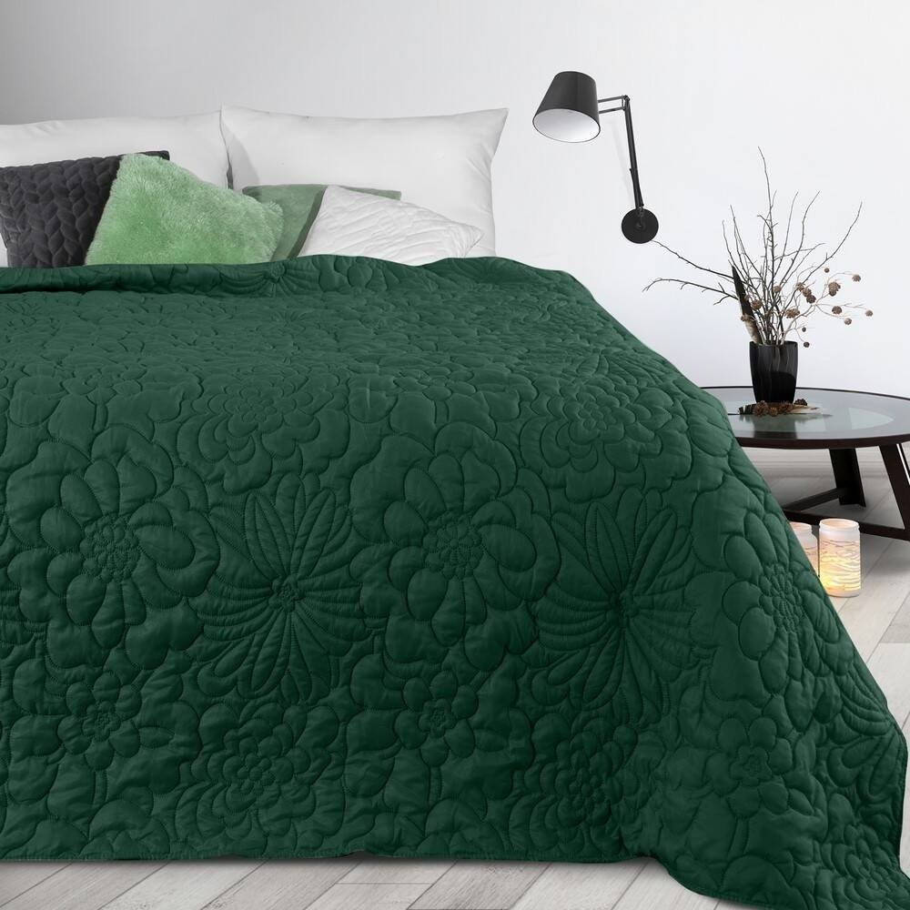 Narzuta wykonana jest z materiału przypominającego do złudzenia tkaninę bawełnianą. Jest miękka, przyjemna w dotyku, a dodatkowym jej walorem estetycznym jest element charakterystycznego przepikowanego wzoru w kwiaty na całej powierzchni, który został wykonany metodą hot press.