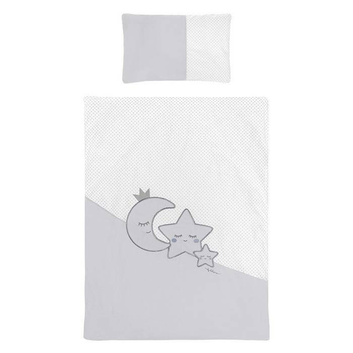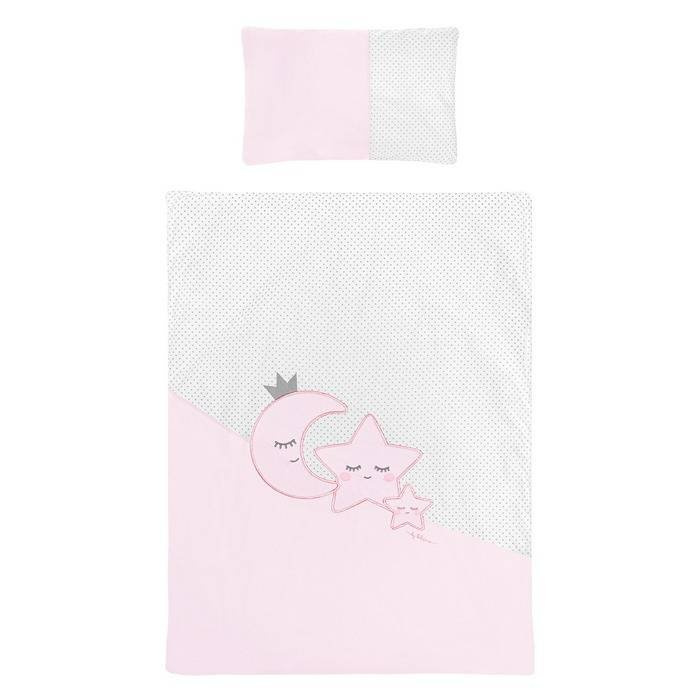 Na środku nadruk gwiazdek i księżyca, pościel w trzech wersjach kolorystycznych.
