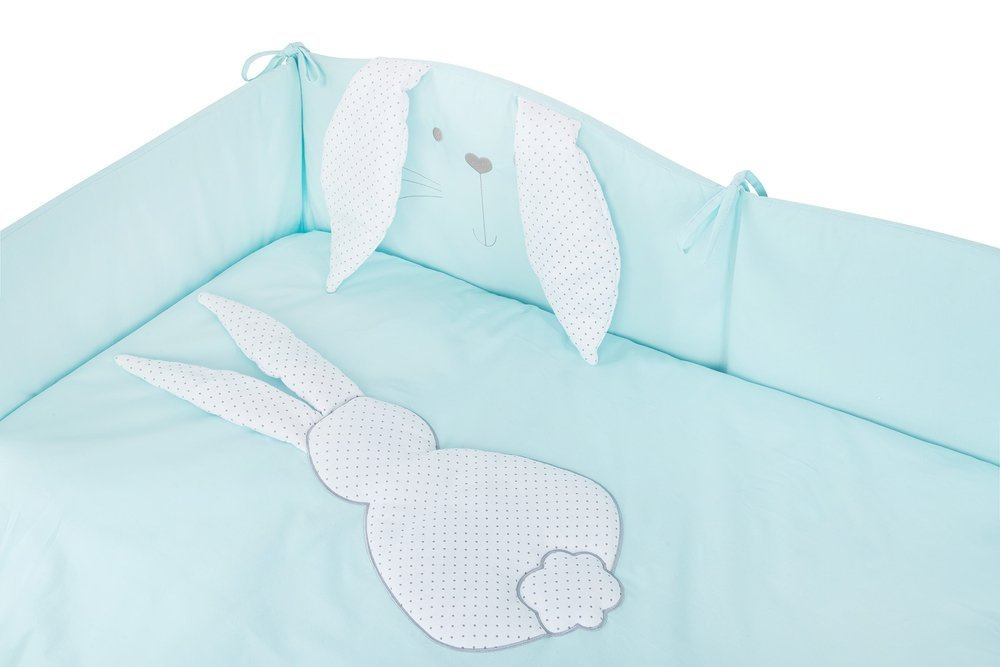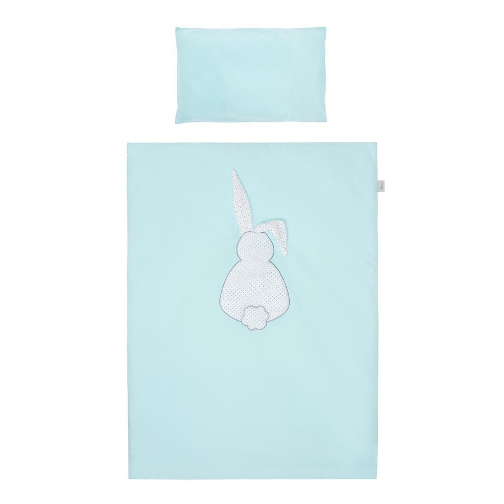 Na środku nadruk zajączka, pościel w trzech wersjach kolorystycznych.