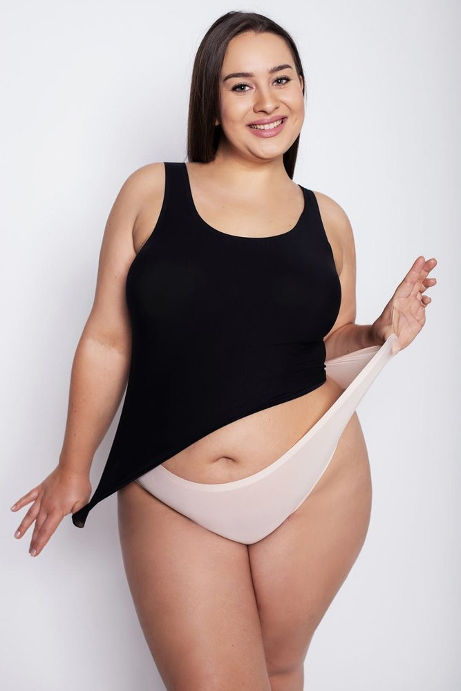 Półprzejrzysta koszulka na szerokich ramiączkach . Model uszyty został z doskonale przylegającej do ciała, bardzo przyjemnej w dotyku dzianiny (typu "druga skóra).