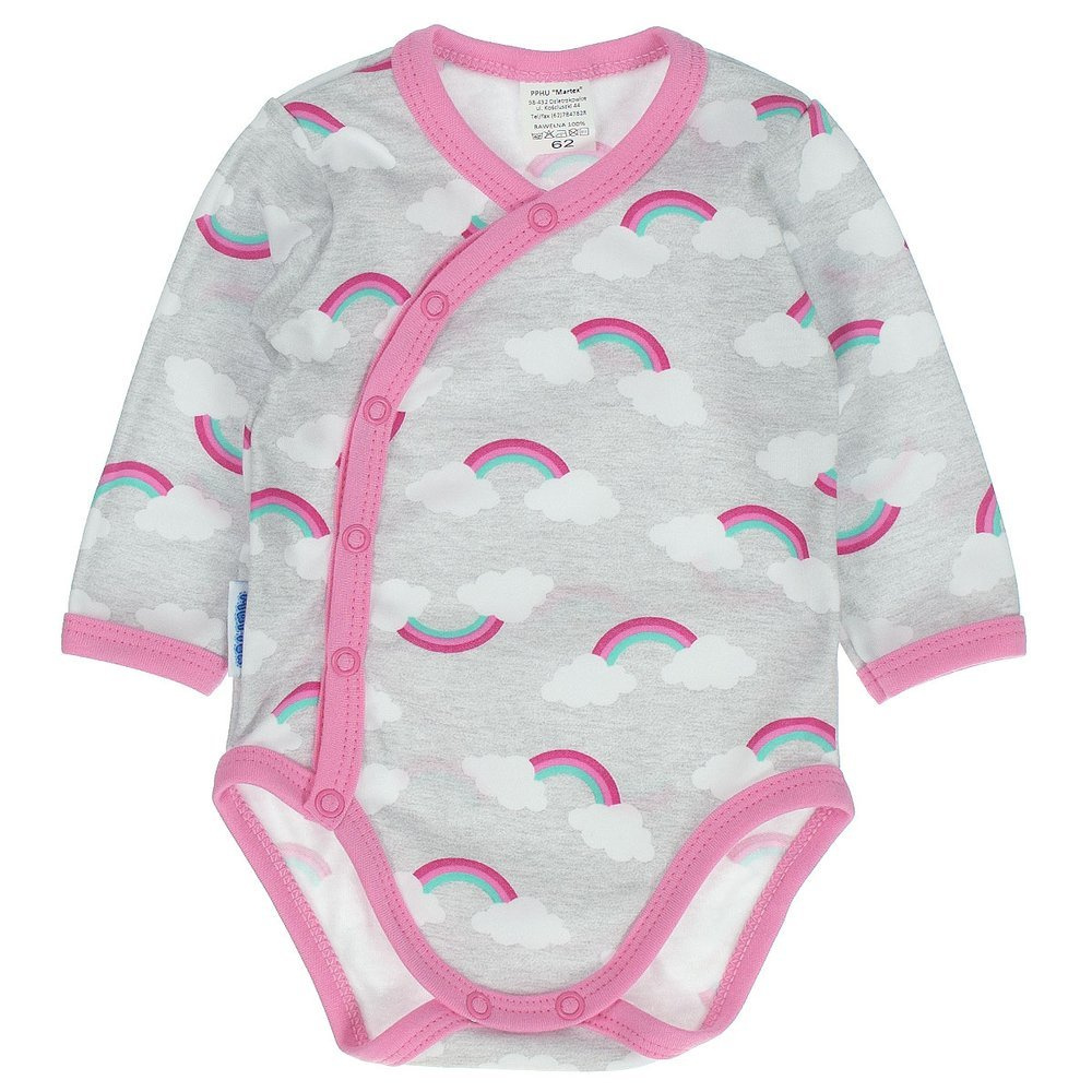 Body wykonane ze 100% bawełny. Ozdobione nadrukiem w tęcze. Na ramionku i w kroczu zapinane na napki. Body rozpinane to niezbędny element wyprawki dla noworodka.