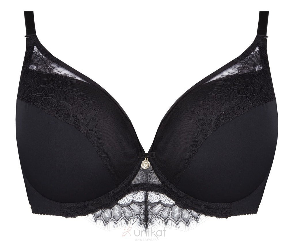 Górna cześć misek, dzięki tiulowi, dopasowuje się do biustu, nie wpija się ani nie odstaje, tworząc gładką, elastyczną linię.