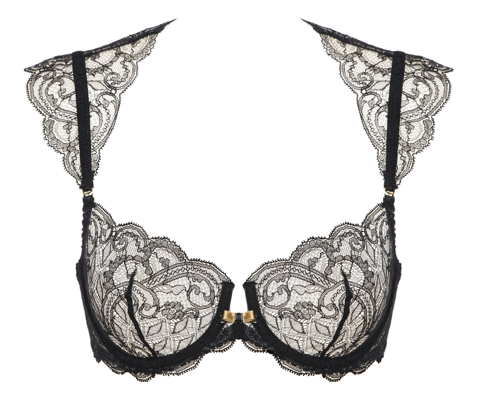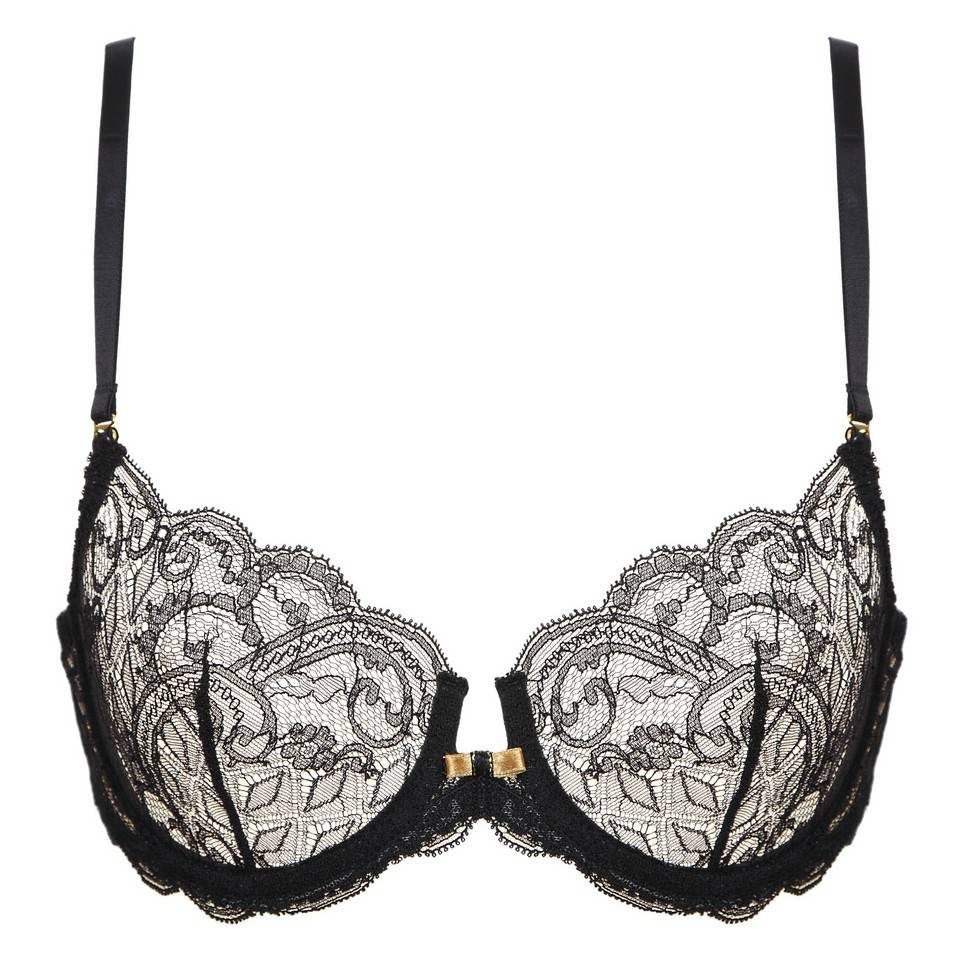 Elegancka, złota kokardka umieszczona między miseczkami dodaje bieliźnie niezwykłego uroku.