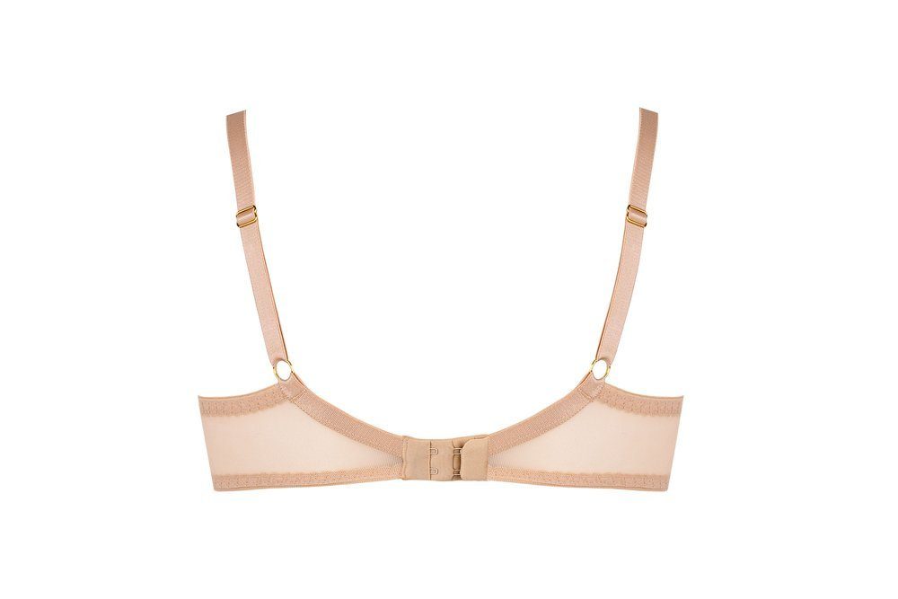Nieodpinane, ozdobione delikatnym haftem ramiączka z możliwością regulacji i kilkustopniowe zapięcie gwarantują idealne dopasowanie. Miseczki zostały wzmocnione tiulem umieszczonym po bokach. Dla lepszego efektu konstrukcję usztywniono fiszbinami.