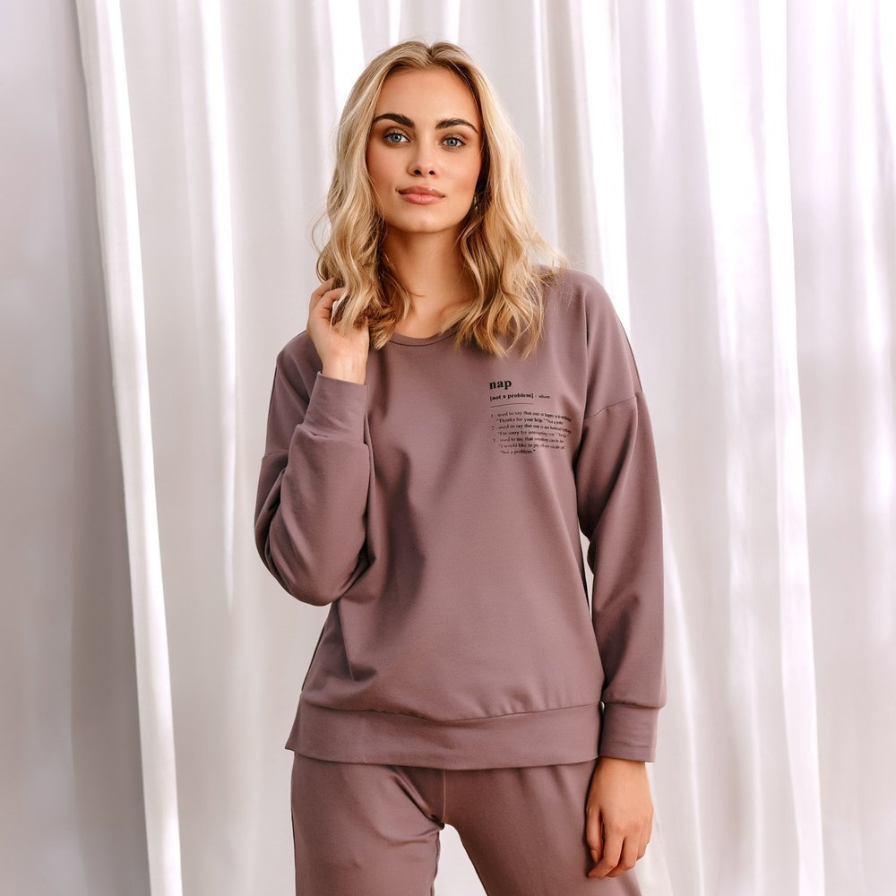 Klasyczna bluza, którą zdobi z napis "n.a.p - not a problem". Tworzy komplet ze spodniami dresowymi SPO.4214 i spodenkami 4215. Uszyta z najwyższą dokładnością z wykorzystaniem najlepszej jakościowo bawełny. Wygodna, miękka i przyjemna w dotyku tkanina zapewni komfort przez cały dzień i noc.