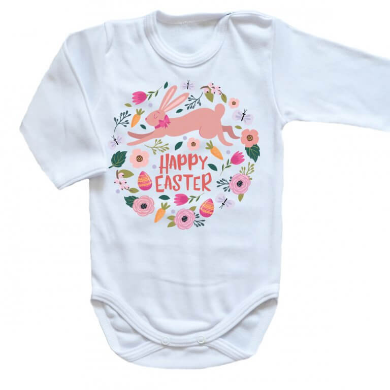 Body długi rękaw "HAPPY EASTER z zajączkiem" Moocha biały
