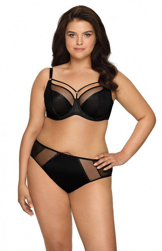 Posiada nieodpinane, regulowane ramiączka, górna część miski z delikatnej siateczki.