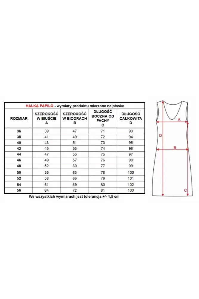 Oryginalna halka, której serce tworzy piękna aplikacja w kształcie motyla. Posiada szerokie ramiączka oraz francuski szew, dzięki czemu idealnie układa się na kobiecej sylwetce. Została wykonana z jedwabiu wiskozowego, który jest delikatny dla skóry i nie uczula. Papillo występuje w dwóch kolorach: czarnym i ecru.
