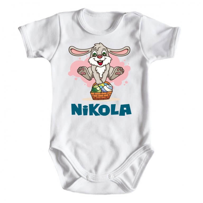 Body krótki rękaw "Wielkanoc zajączek z koszyczkiem z imieniem" Moocha biały