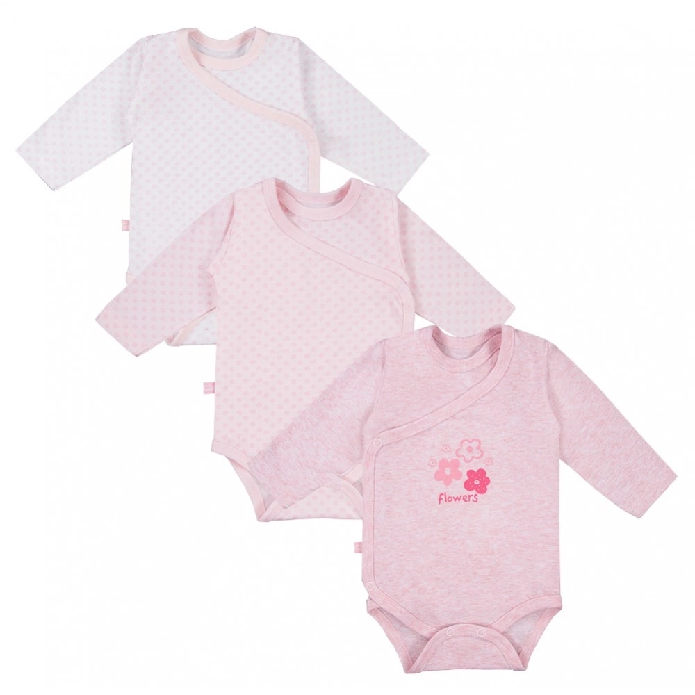 W 3-paku znajdują się 3 sztuki kopertowych body niemowlęcych. Wykończone są miękką lamówką.