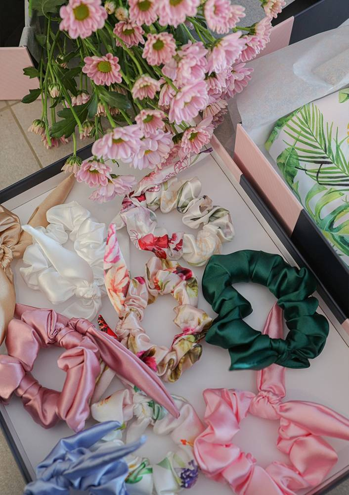 Efektowna  satynowa gumka  do włosów. Możesz wykorzystać ten mały szczegół nie tylko do stylizacji nocnej, ale także dziennej. W połączeniu z naszą najnowszą kolekcją FLOWERS, gumki super się uzupełnią.