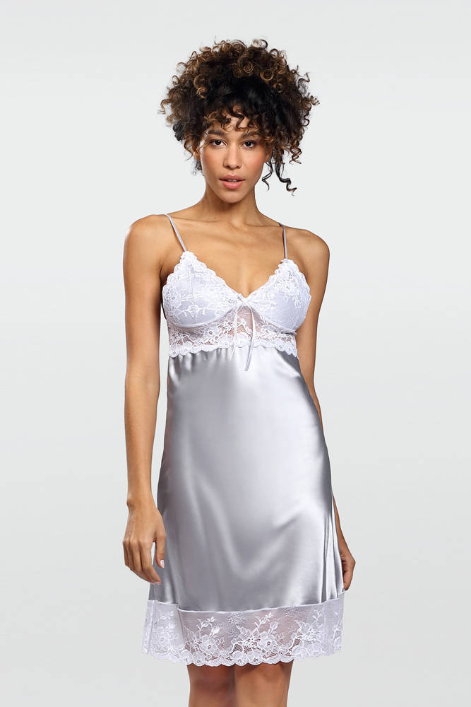 Z kolei dół haleczki stanowi przyjemna w dotyku satyna w szarym kolorze.