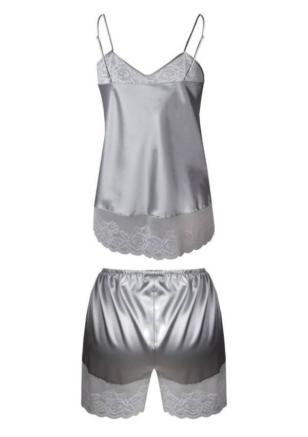 Piżama Damska Satynowa Isabella DKaren - srebrny