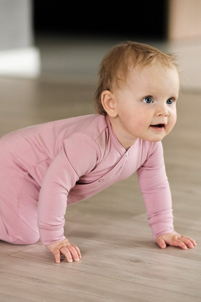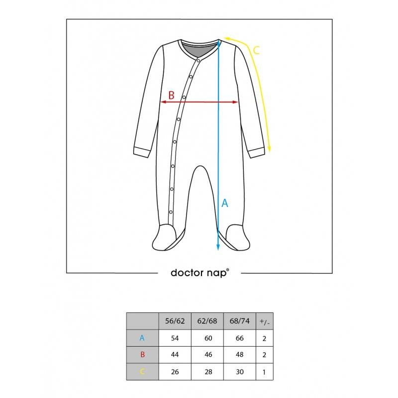 Bawełniany pajac niemowlęcy. Model rozpinany jest na całej długości na bezniklowe zatrzaski. To bardzo ułatwia przebieranie lub przewijanie dziecka. Anatomiczny krój oraz wszyty w kroku klin sprawia, że ubranko nie krępuje ruchów maluszka podczas snu.