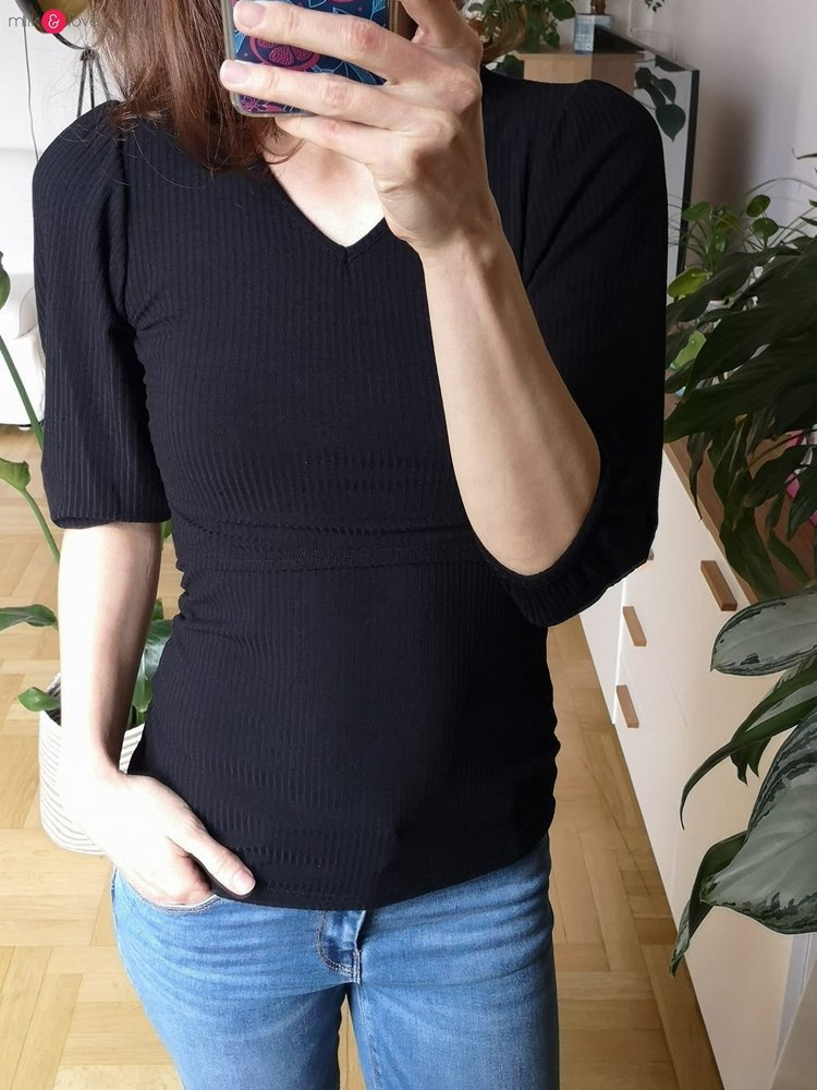 Bluzka wykonana jest z wysokogatunkowej dzianiny z wiskozą. Zaprojektowana zgodnie z ideą slow fashion - możesz ją nosić w ciąży, w okresie karmienia piersią i jeszcze dłużej. Odpowiednio długa, aby zakrywać plecy