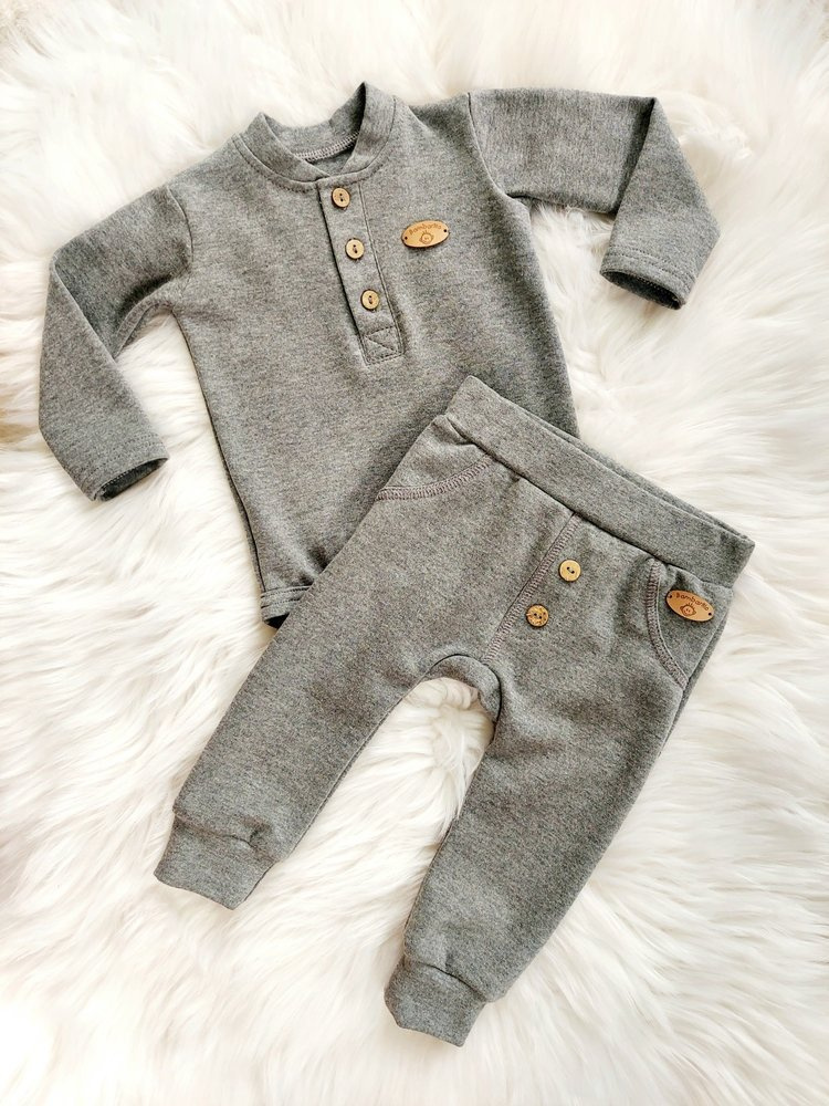 Body zapinane z przodu na 3 guziki i w kroczku na bezniklowe napki. Do kompletu można dokupić spodnie Mieszko.