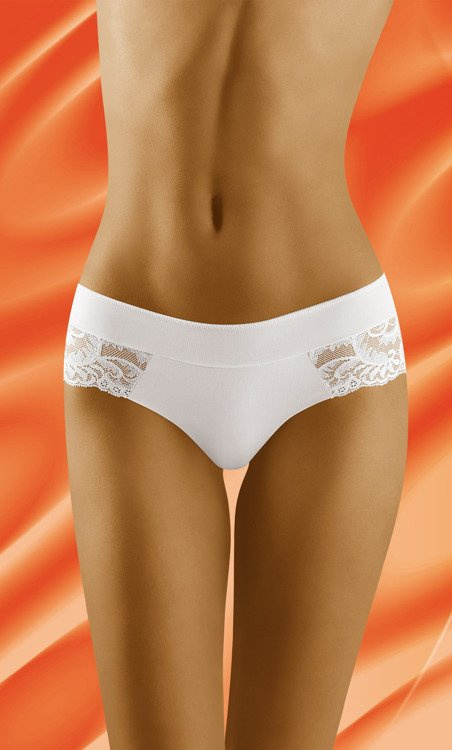 Figi damskie wykonane z gładkiej mikrofibry. Pas i przód nogawek cięty laserowo.