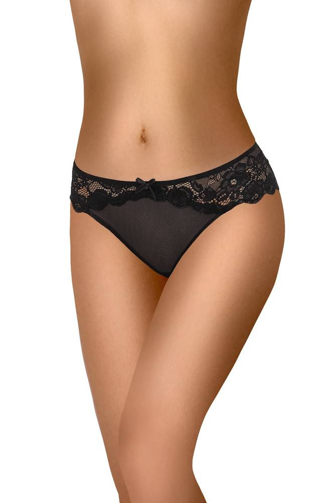 Figi damskie wykonane z wysokiej jakości miłej w dotyku mikrofibry oraz efektownej koronki o kwiatowym motywie.