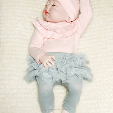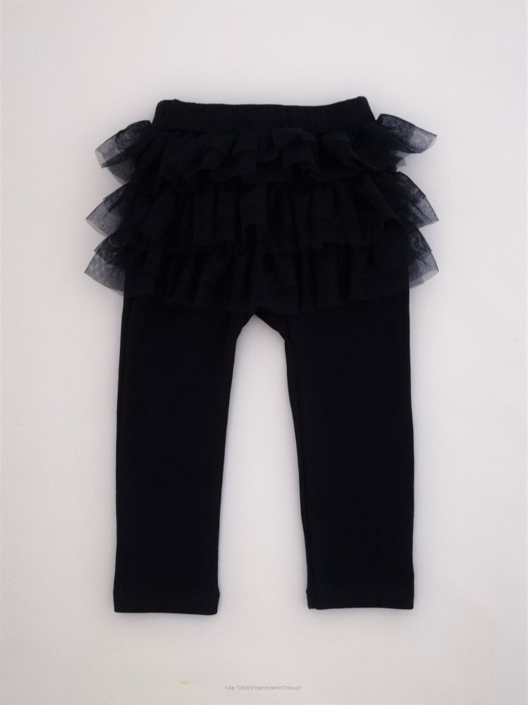 Spodnie dziecięce z tiulem. Wygodny, nieuciskający ściągacz w pasie, utrzymuje spodenki na odpowiednim miejscu, w każdej sytuacji. Świetnie sprawdzą się w domu, na spacerze i podczas wyjazdów. Anatomiczny krój sprawia, że nie krępują ruchów dziecka podczas nauki raczkowania czy chodzenia. Warto o nich pamiętać kompletując wyprawkę dla maluszka. Idealnie pasują do body Emily.