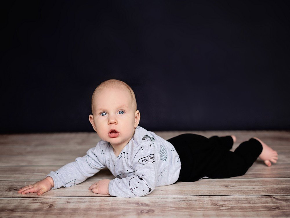 Body niemowlęce z długim rękawem, z wysokiej jakości bawełny w kolorze szarym.