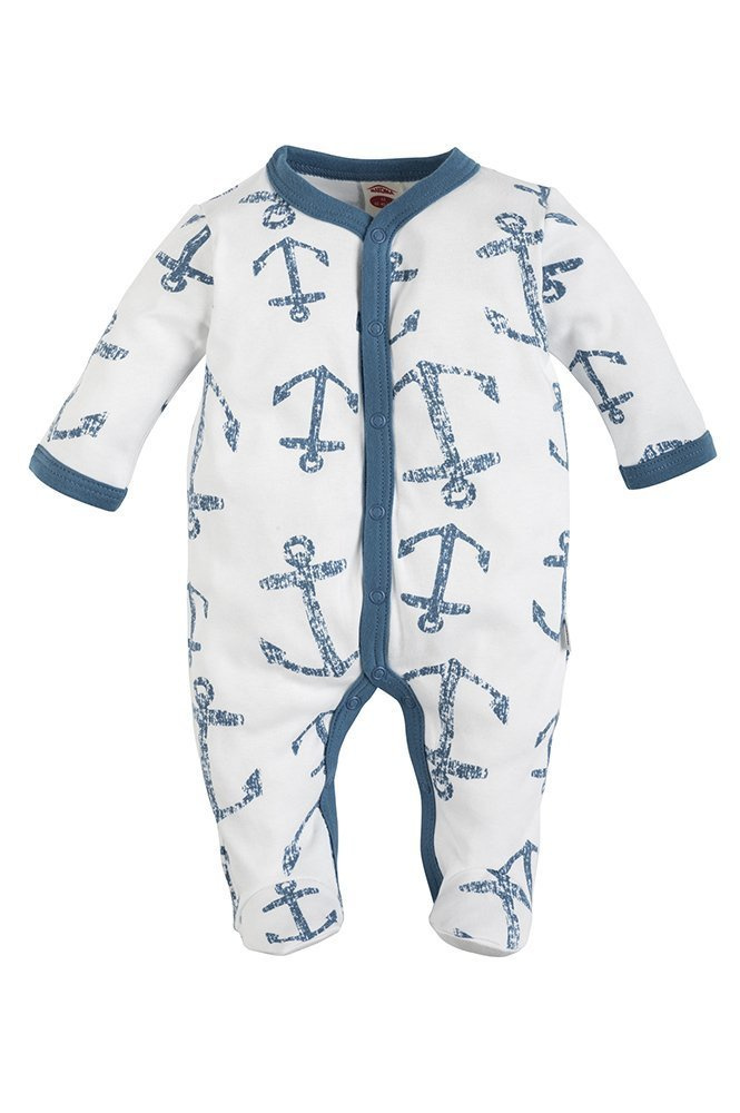 Bawełniany pajac w kotwice. Możliwość całkowitego rozpięcia umożliwia łatwe i szybkie ubieranie dziecka. Zapewnia swobodę użytkowania i nie krepuje ruchów dziecka. Dostępny w rozmiarach 56-80. Wykonany z najwyższej jakości bawełny.