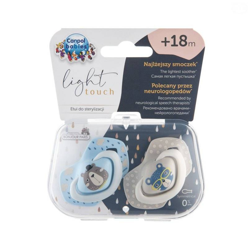 Smoczki Light touch stworzono by zapewnić maksymalny komfort najmłodszym dzieciom. Wygodny uchwyt smoczka pozwala na przymocowanie łańcuszka i ułatwia podanie go dziecku. Ich wyjątkowo miękka silikonowa gumka wymaga mniej wysiłku podczas ssania, a lekka, profilowana tarczka nie obciąża zgryzu i gwarantuje swobodne oddychanie. Smoczki Light touch z łatwością utrzymasz w czystości. Dzięki nowoczesnemu etui, które może służyć do przechowywania, ale też do szybkiej i wygodnej dezynfekcji w kuchence mikrofalowej. Wystarczy odrobina wody i 2 minuty by zapewnić smoczkom higieniczną czystość.