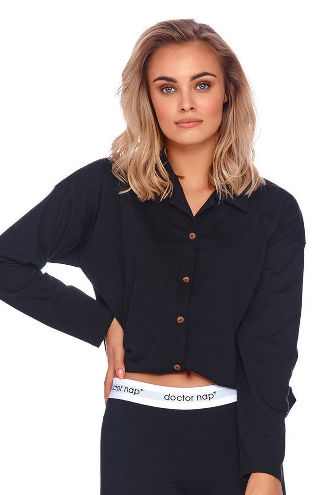 Letnia piżama damska z delikatnej bawełny. Koszulka z długim rękawem, rozpinana. Do kompletu krótkie szorty typu kolarki. Bardzo wygodny fason, delikatnie dopasowany do ciała. Spodoba się kobietom, które uwielbiają delikatność i swobodę. Dzięki rozpinanej koszulce, świetnie się sprawdzi, podczas karmienia maluszka.