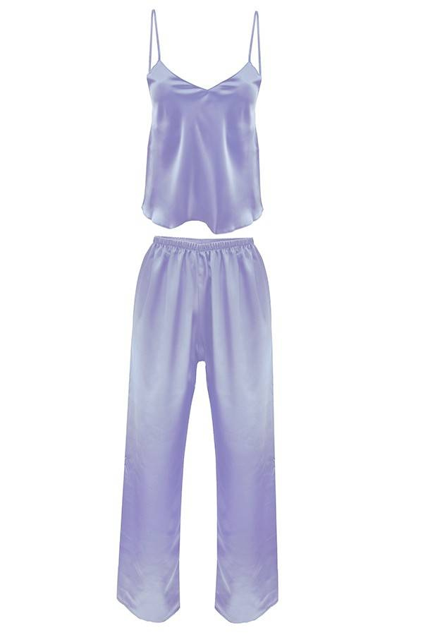 Do kompletu długie spodnie satynowe na cienkiej gumce.