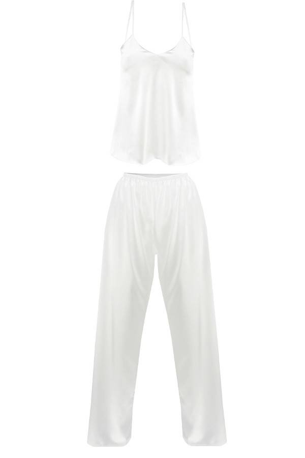 Zmysłowy komplet składa się z koszulki oraz długich spodni.