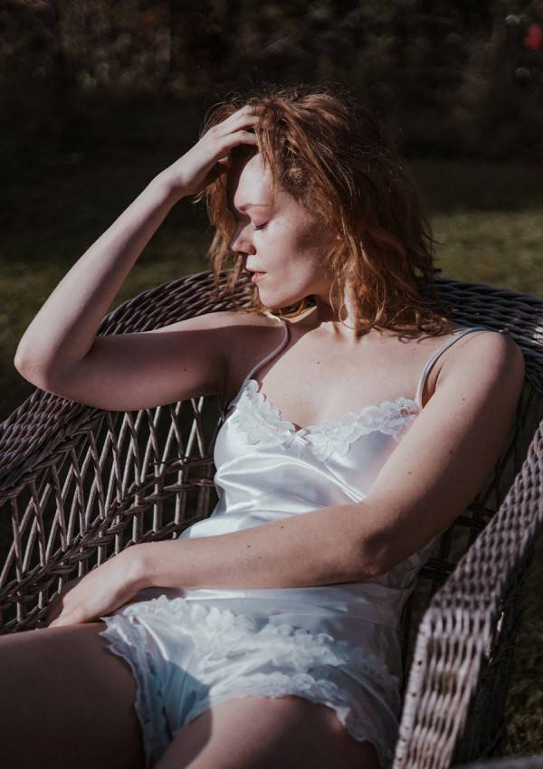 Satynowy, niezwykle uroczy komplet Viola firmy DKaren. Komplet składa się z koszulki i spodenek. Przód koszulki tworzą dopasowane, trójkątne miseczki ozdobione delikatną koroneczką. Dół koszulki i spodenek ozdobiony jest tą samą koronką.