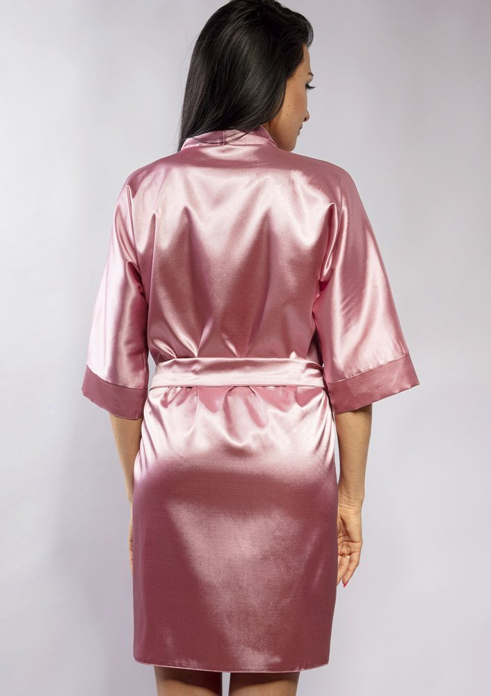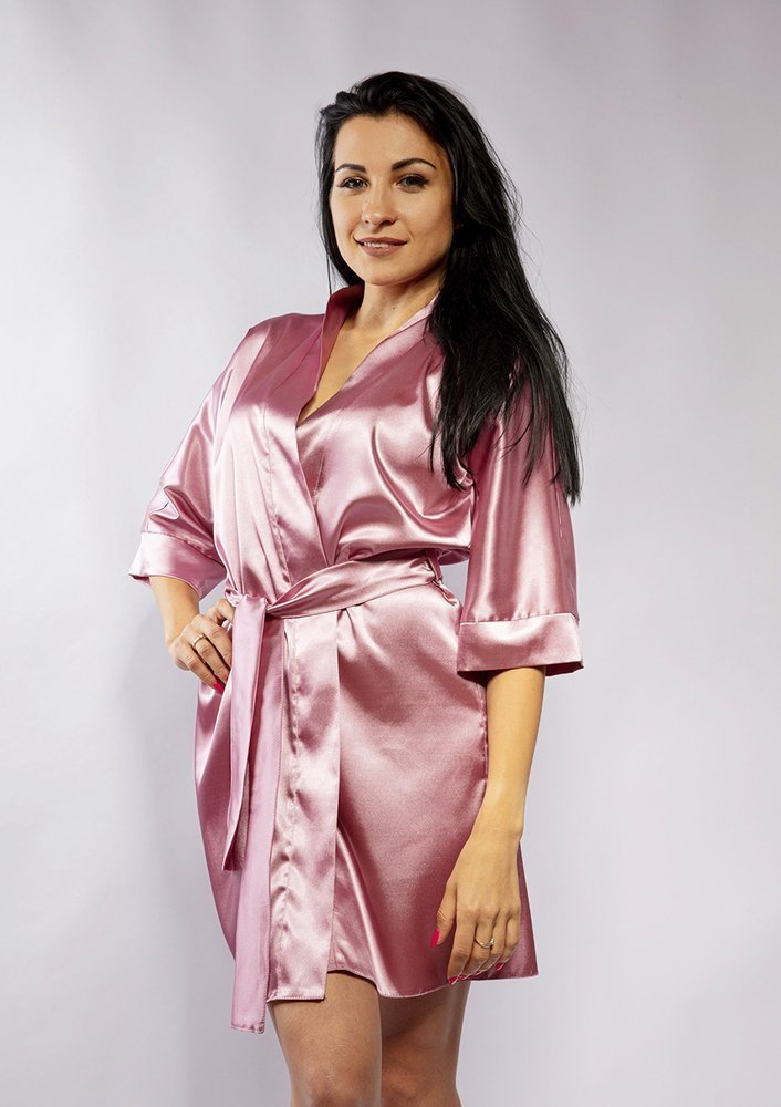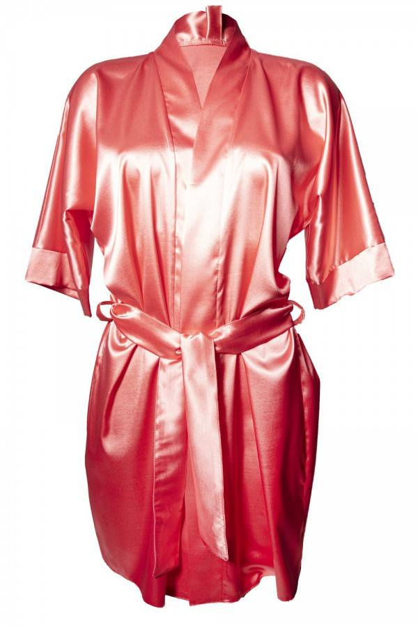 Podomka wykonana z lejącej satyny, o komfortowym kroju jest obowiązkowym elementem garderoby eleganckiej kobiety i sprawdzi się w każdej sytuacji. Rękawy kimonowe, które dają możliwość noszenia na dwa sposoby: podwinięte mankiety lub proste. Wszystko zależy od tego jaki masz nastrój. Ta krótka satynowa podomka o kroju kimona posiada pasek, który seksownie podkreśla talię.