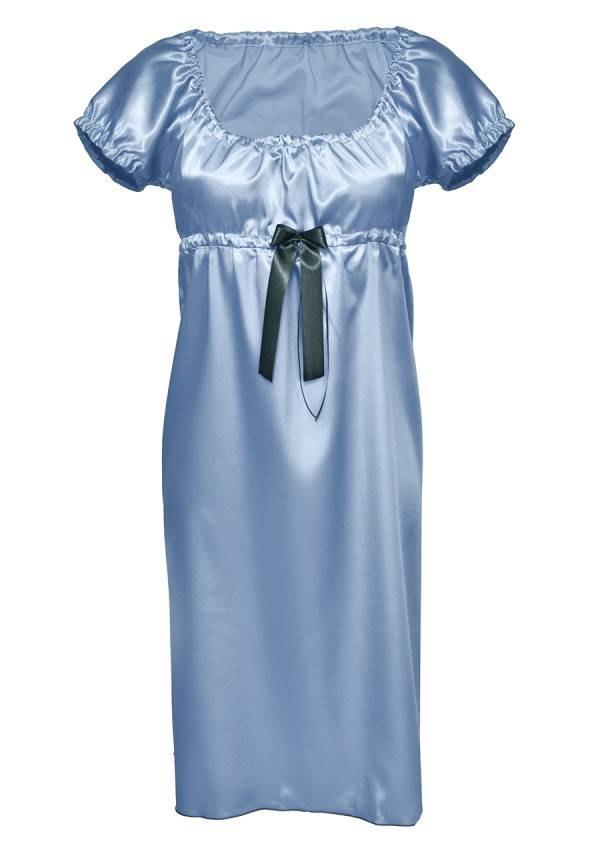Koszulka damska z przyjemnej satyny, z krótkim rękawem. Na biuście efektowna kokardka. Krój lekko rozszerzany ku dołowi.