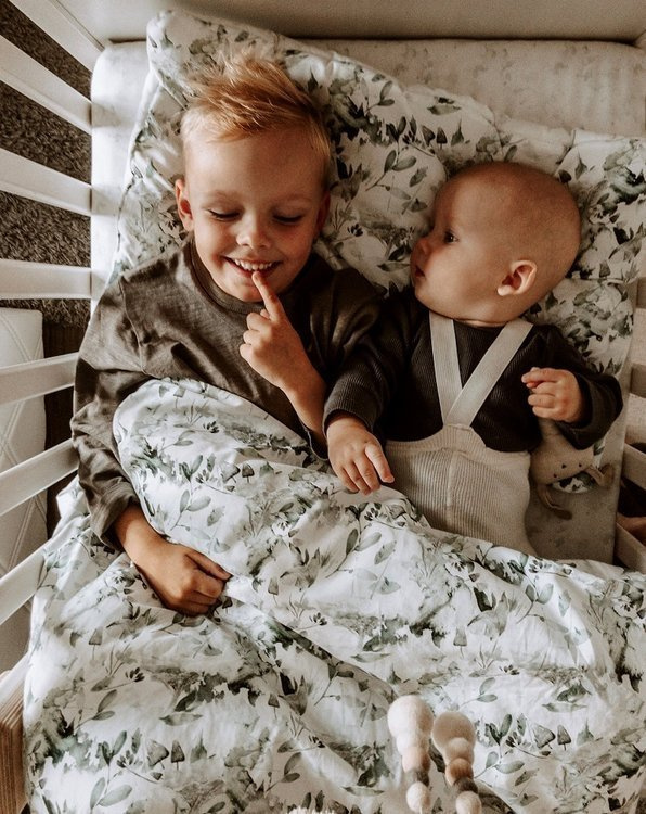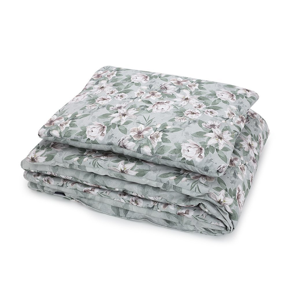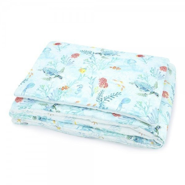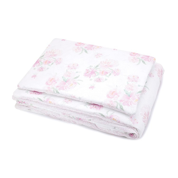 Cieplutki komplet pościeli z wszytym wypełnieniem, doskonały do kołyski, łóżeczka i na popołudniową drzemkę.