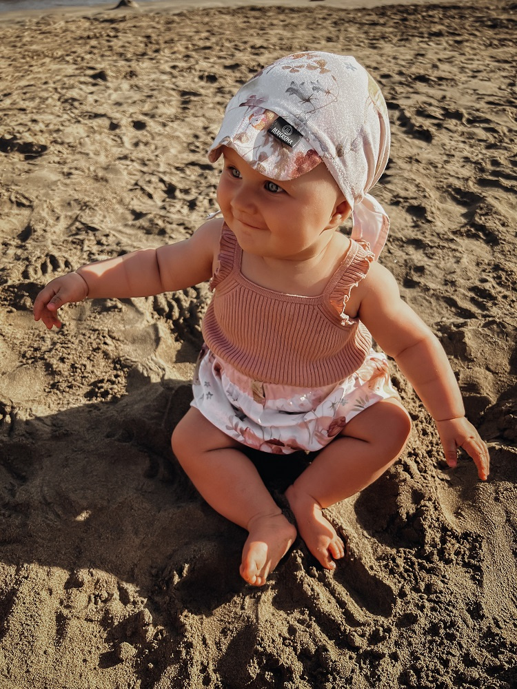 Mamy do zaoferowania miękka, bambusowa chustka, która świetnie chroni główkę przed wiatrem i promieniami słońca.